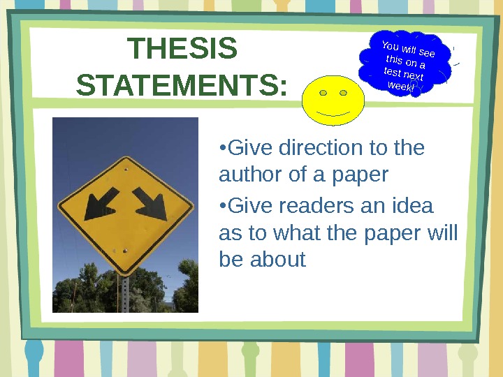 The state of illinois has been locked into a debate for several years as to whether the driving age should be raised from 16 . A solid thesis statement will always be the heart of your essay. A thesis statement must concentrate on a specific area of a general topic. For this reason, as you write your paper, your thesis statement may change. You've read, studied and spent hours of time and energy writing papers. Do your students need extra practice writing thesis statements? Learn how to write an effective thesis statement with these tips and examples. All notes and exercises can be done on separate sheets of paper, which you. Write nt if there is no thesis statement. However, writing 4 pages on everything the reader . Carefully read the writing prompt and the bad thesis statement. As a student, you'll also write essays in your courses. Most colleges and universities ask you to submit a writing sample with your application.
